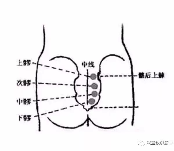 《类经图翼》提到:“上髎,主调妇人阴中痒痛,赤白带下。”《铜人腧穴针灸图经》云:“中髎,调妇人绝子带下,月事不调。”《针灸甲乙经》曰:“女子下苍汁不禁,赤沥,阴中痒痛,少腹控俛不可俯仰,下髎主之……肠鸣下注,下髎主之。